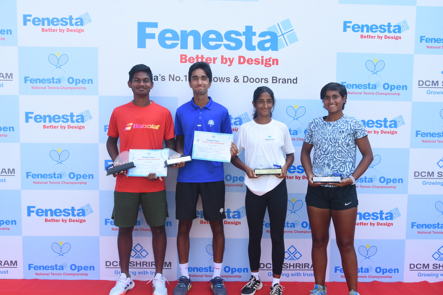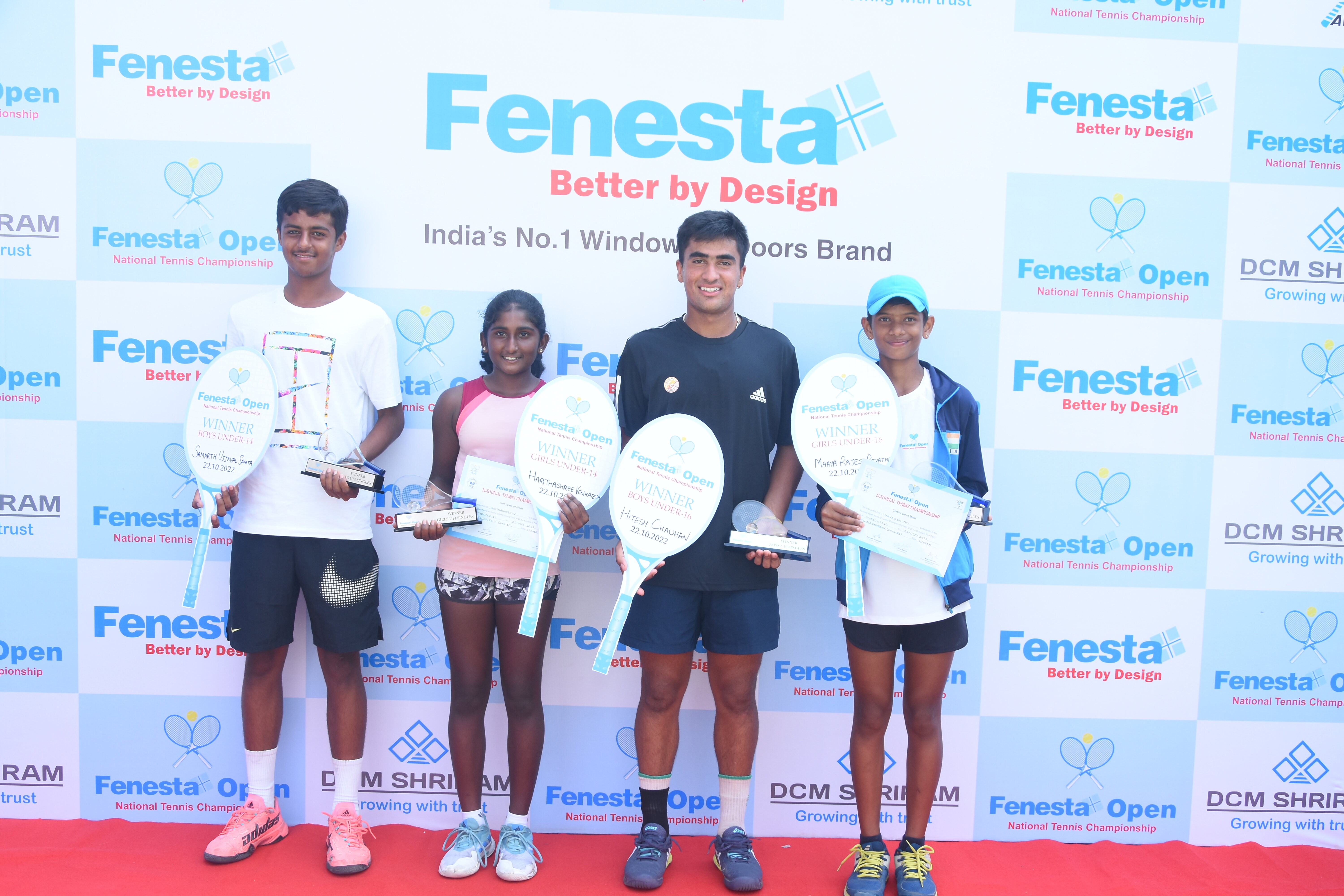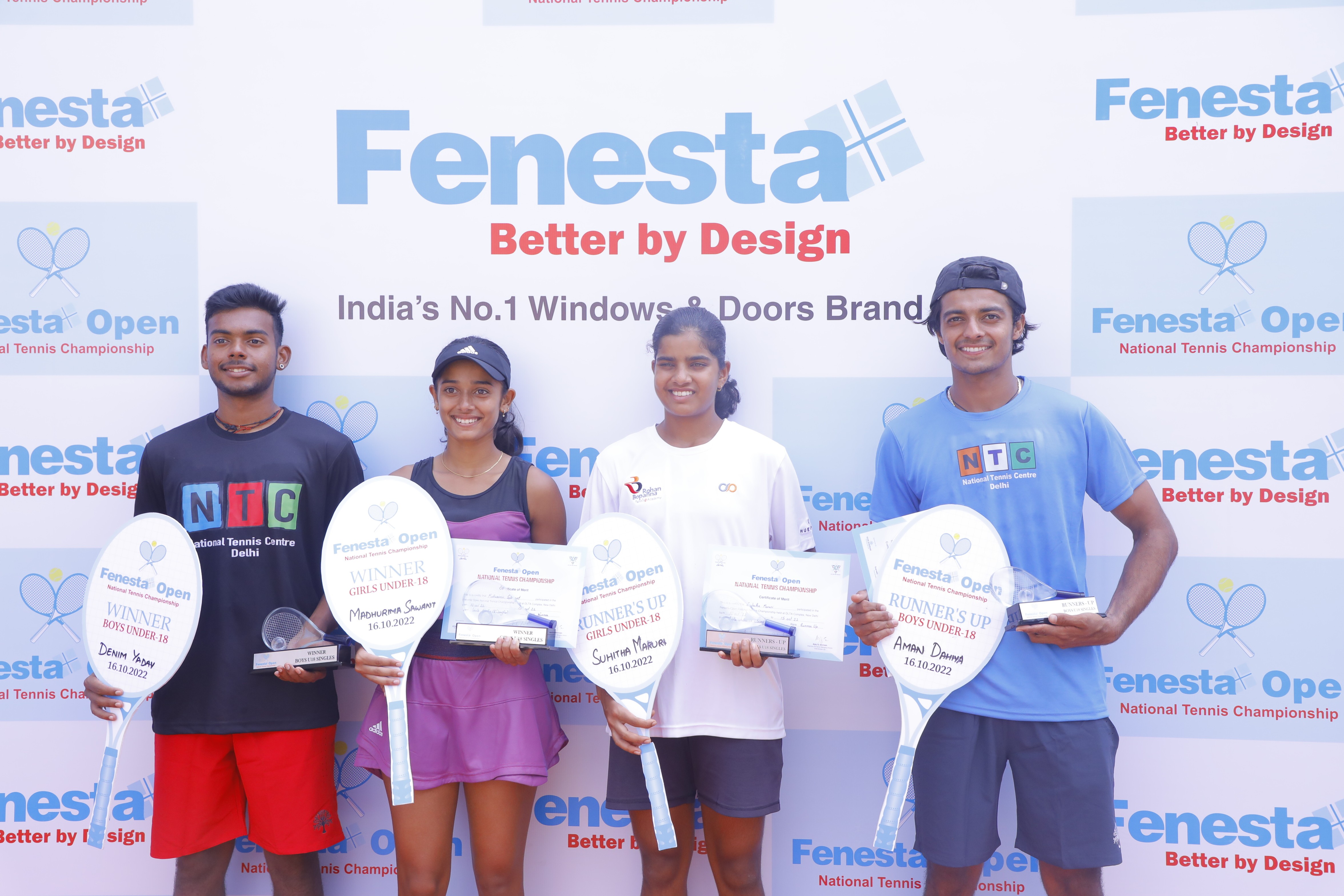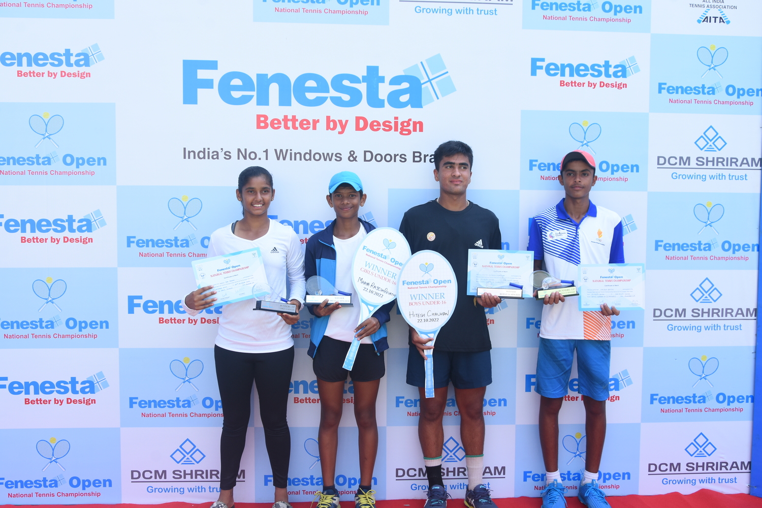 “Winners of Men’s & Women’s and Boys & Girls U18 at the Fenesta Open Tennis Championship, 2022