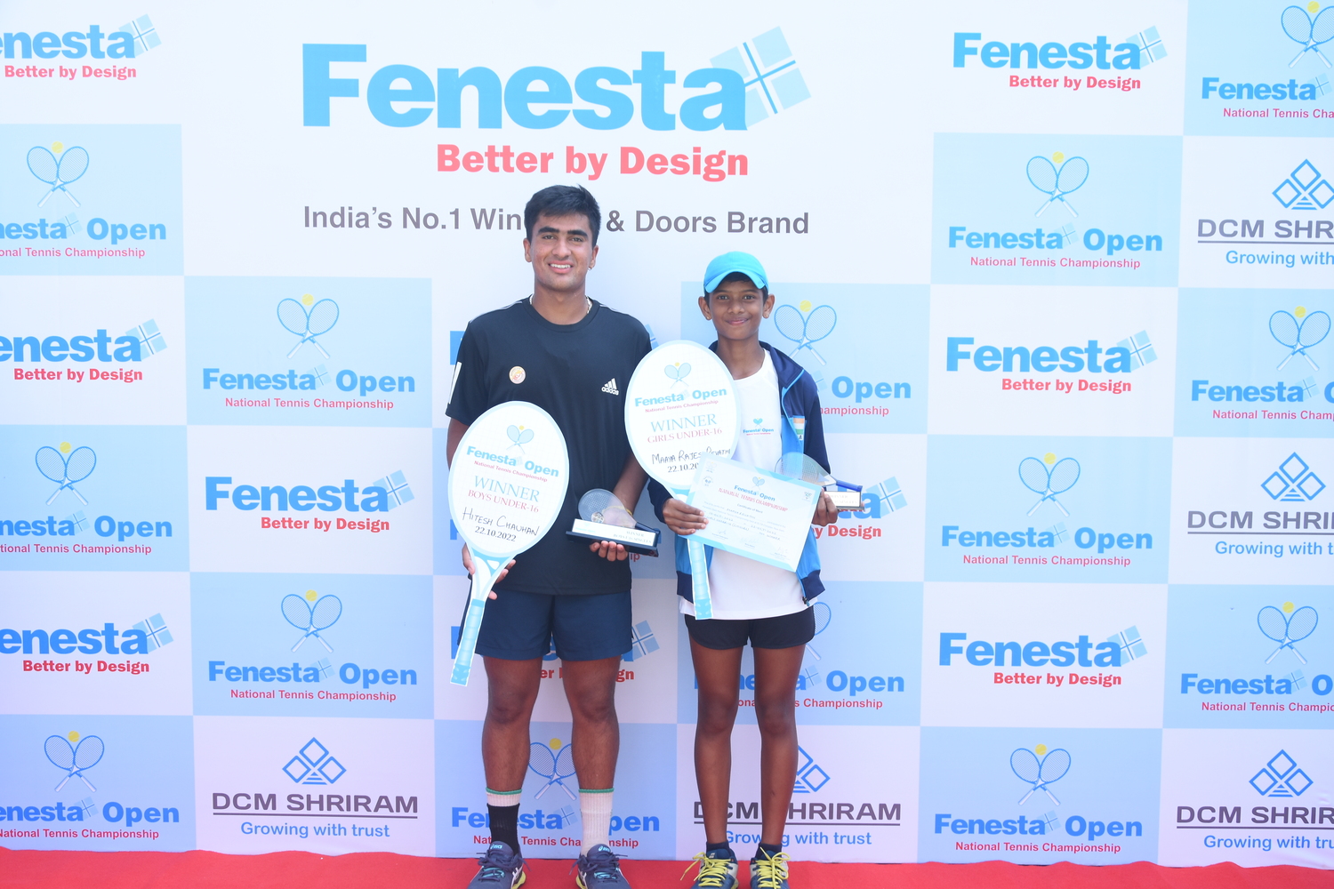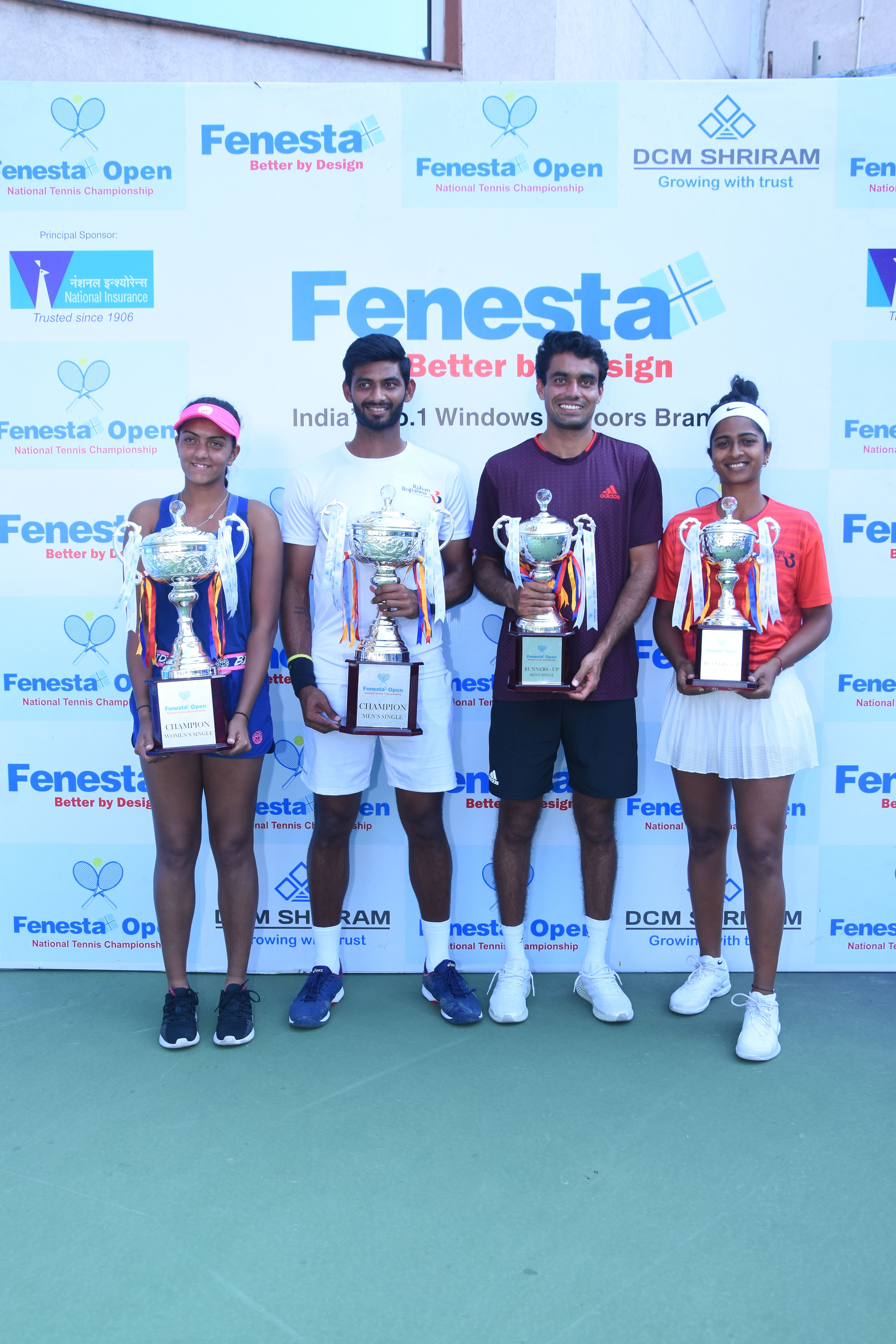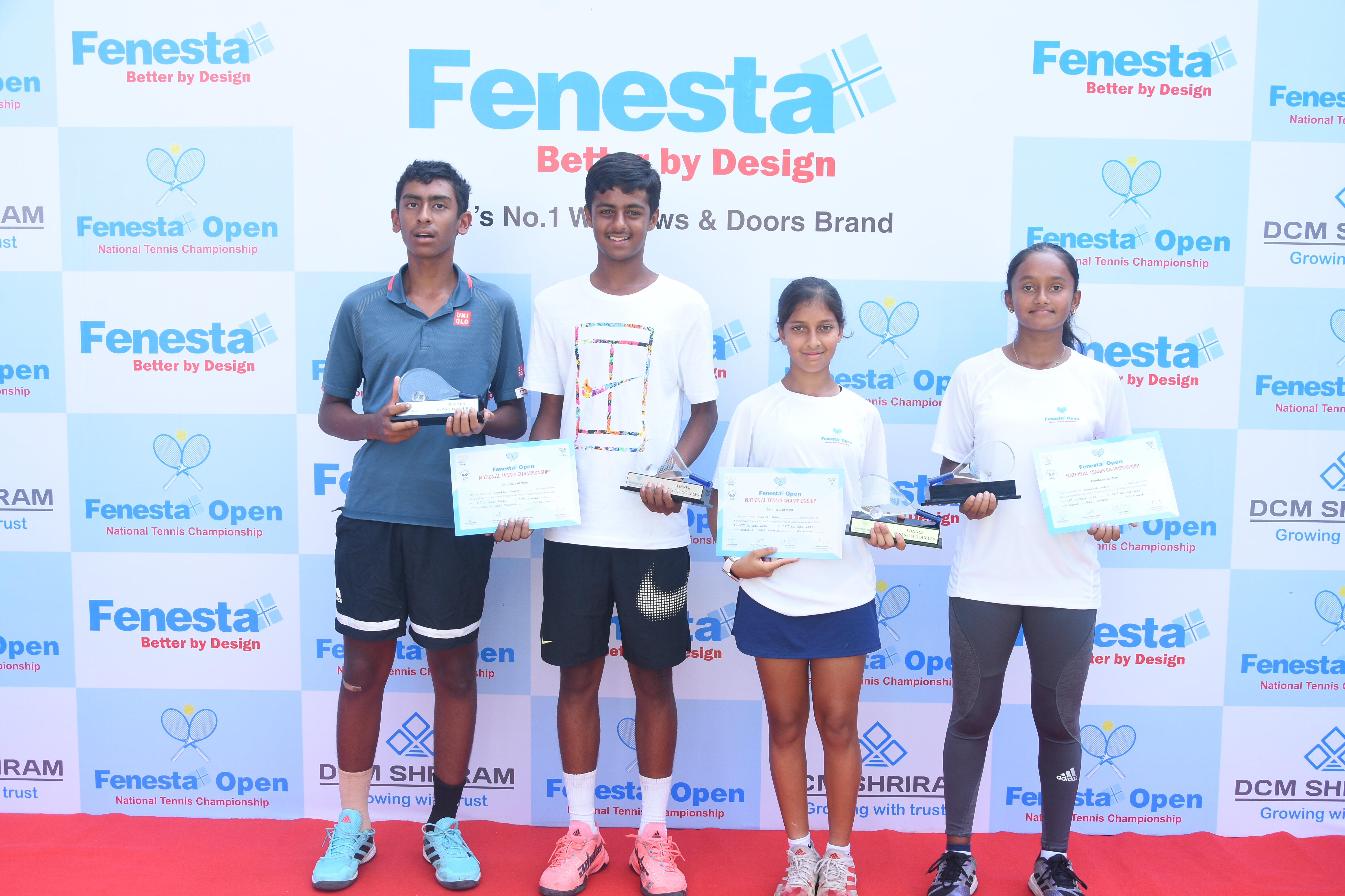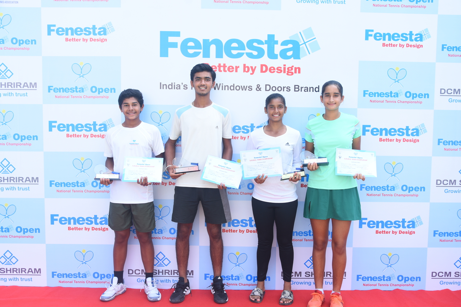 “Winners of Men’s & Women’s and Boys & Girls U18 at the Fenesta Open Tennis Championship, 2022