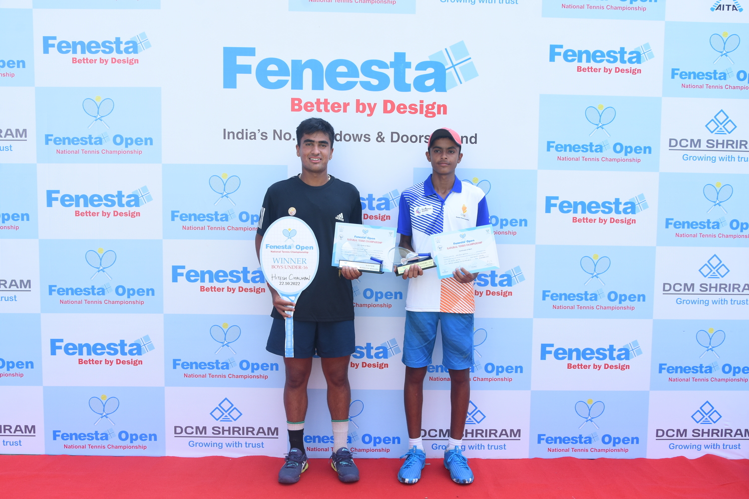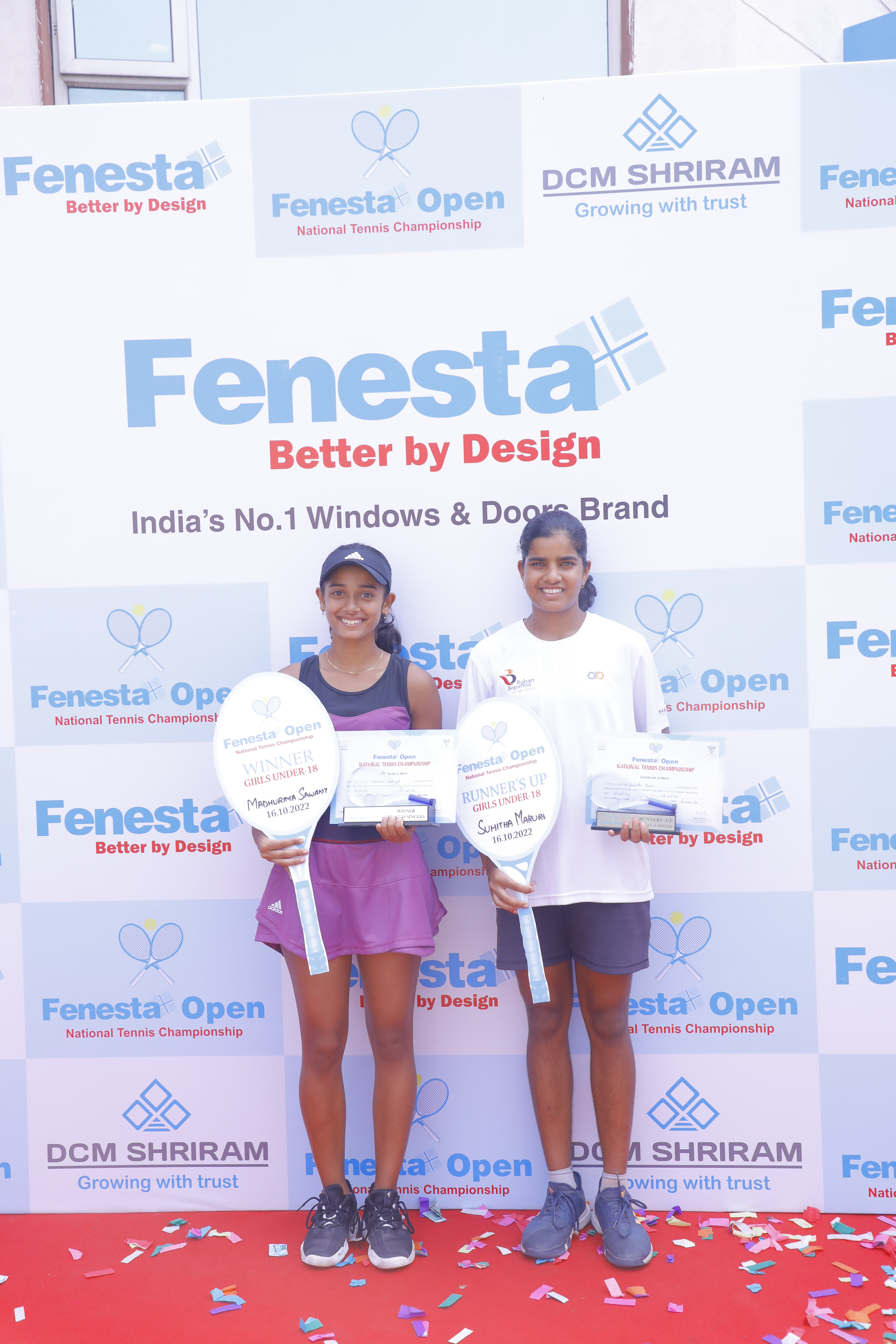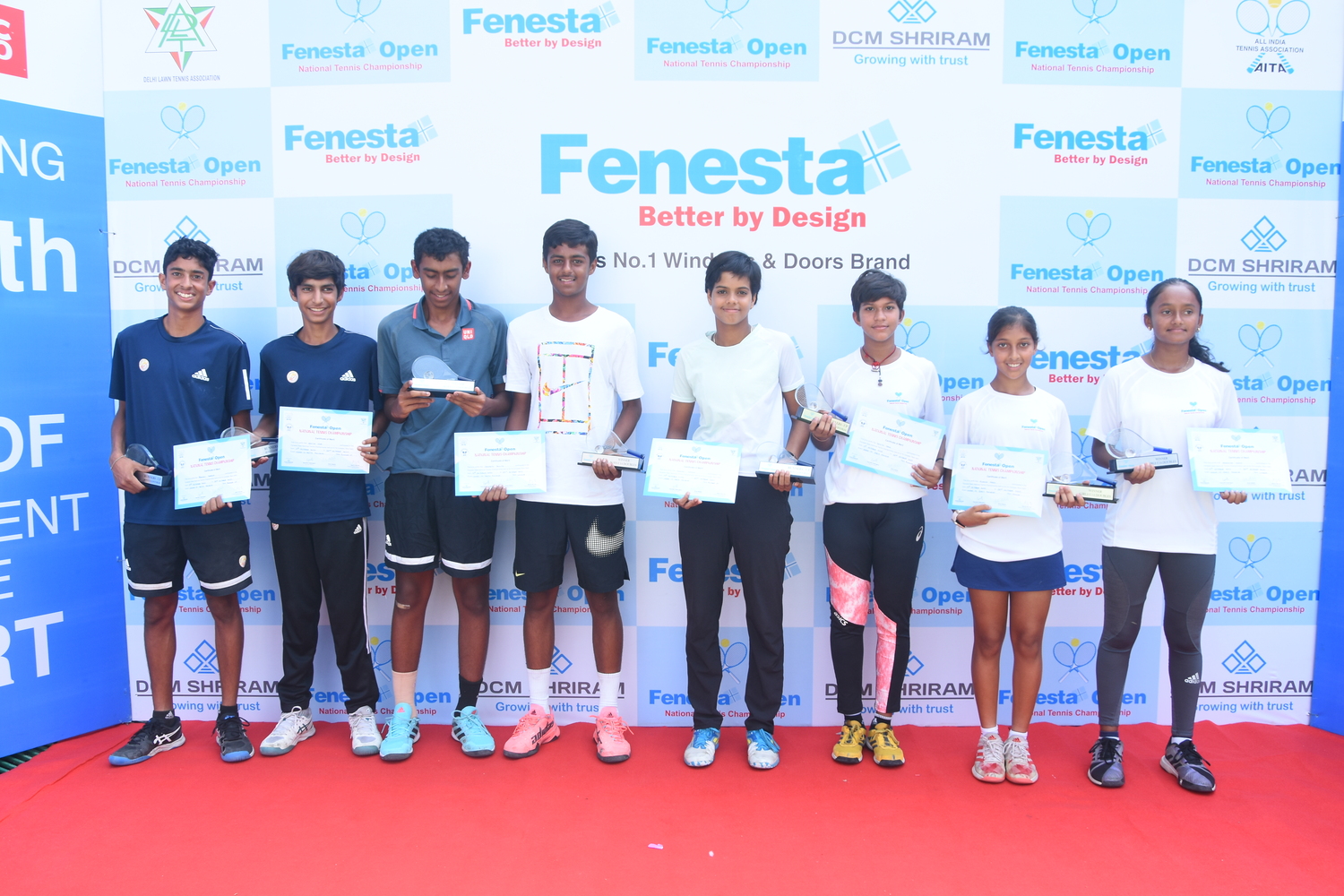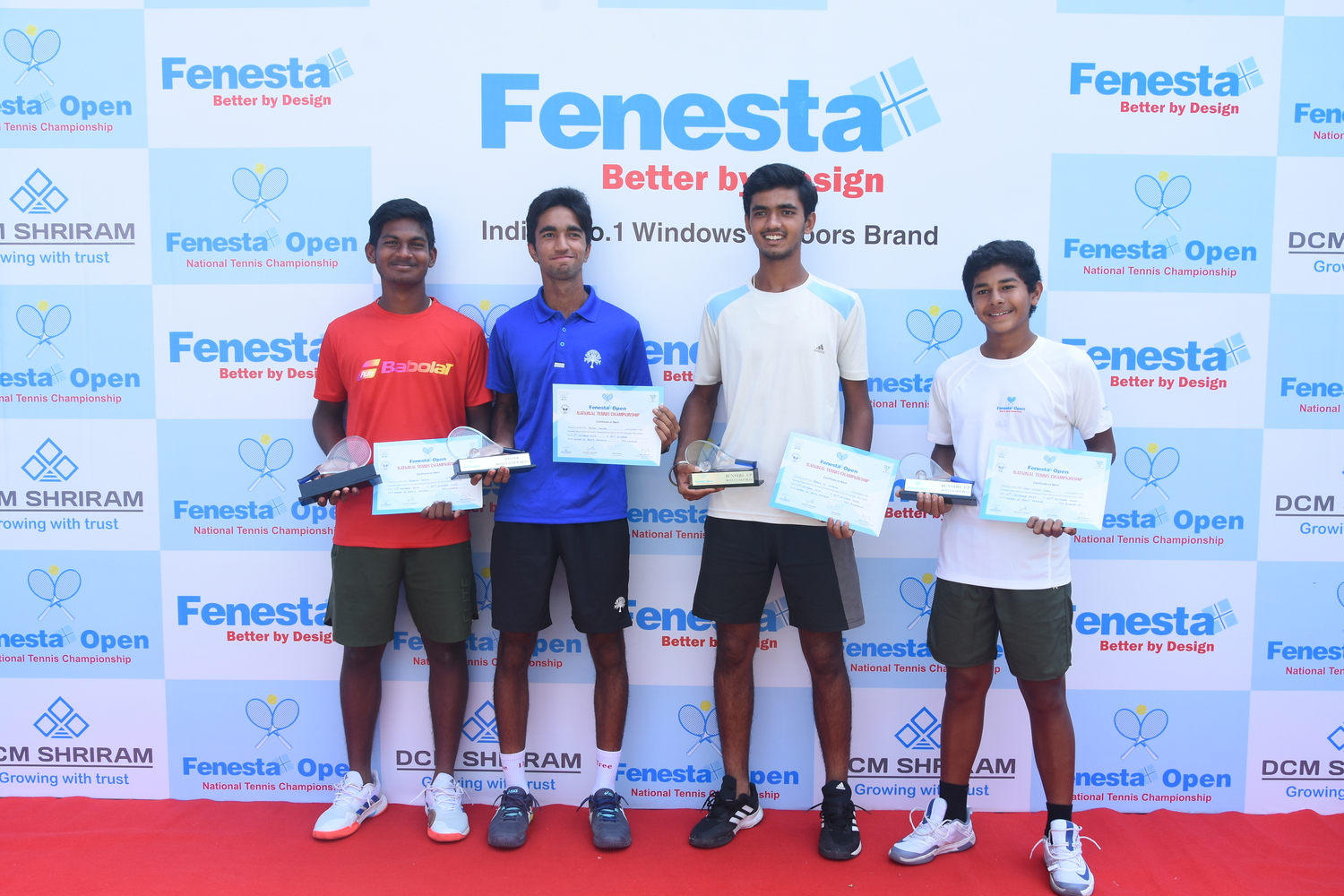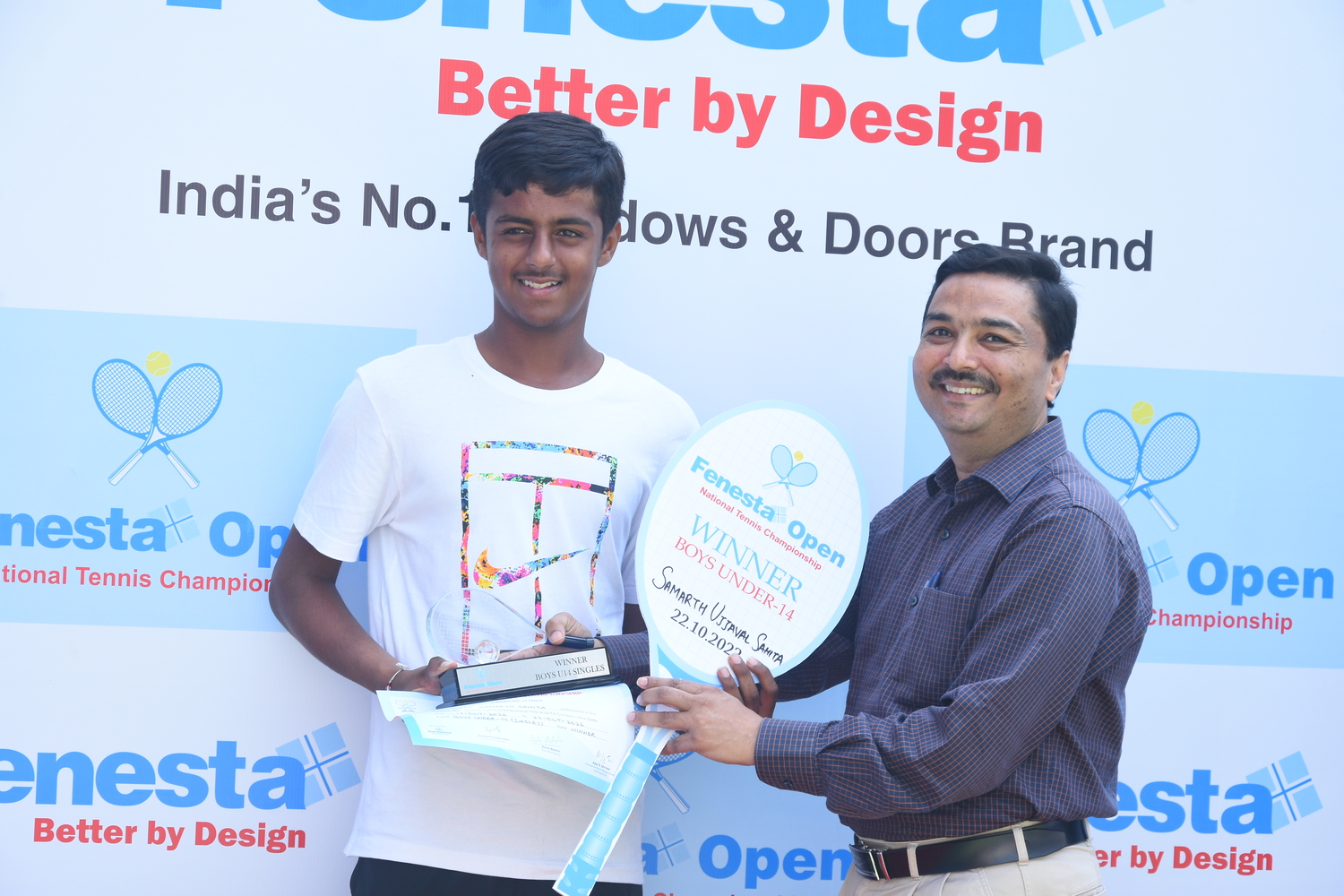 “Winners of Men’s & Women’s and Boys & Girls U18 at the Fenesta Open Tennis Championship, 2022