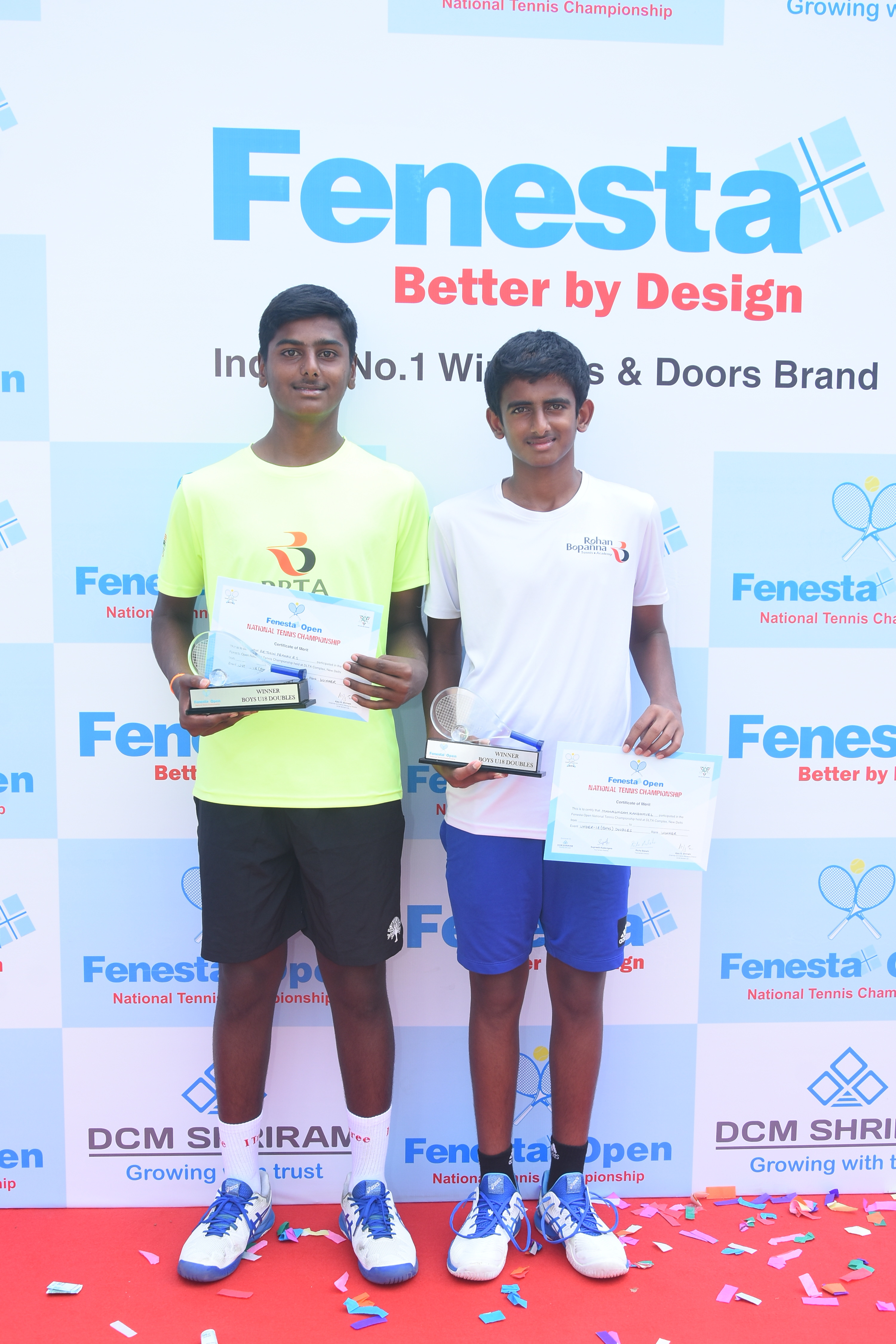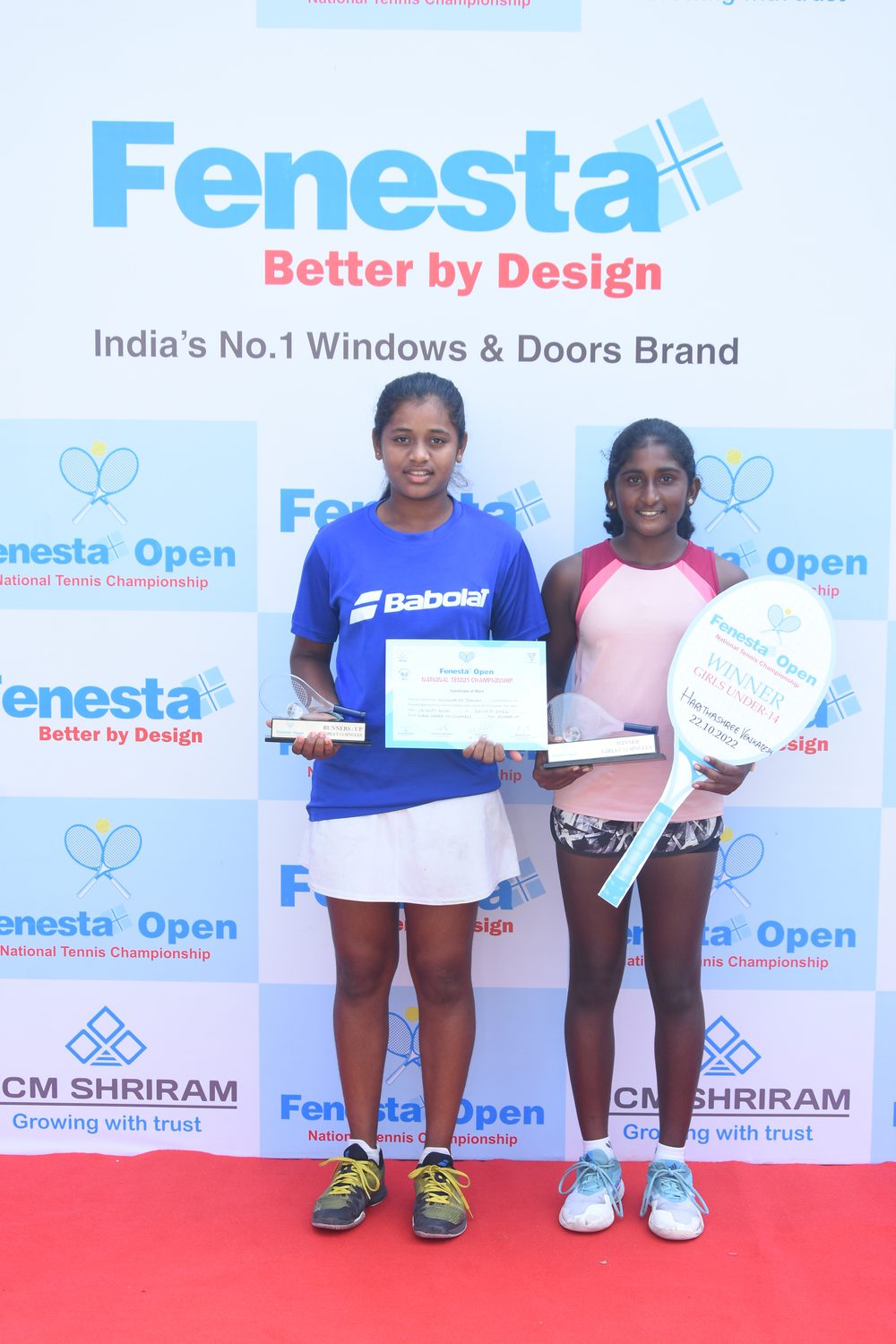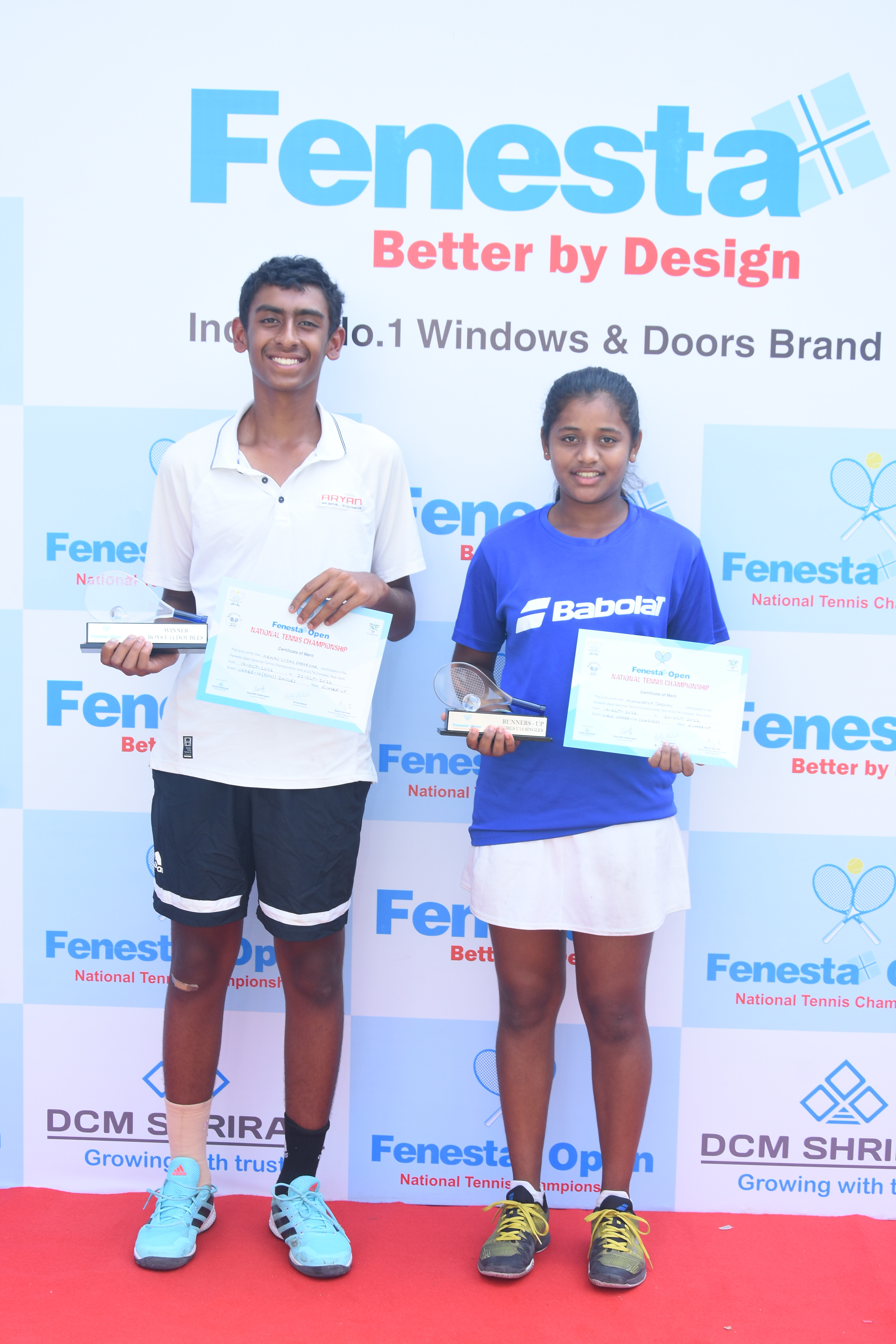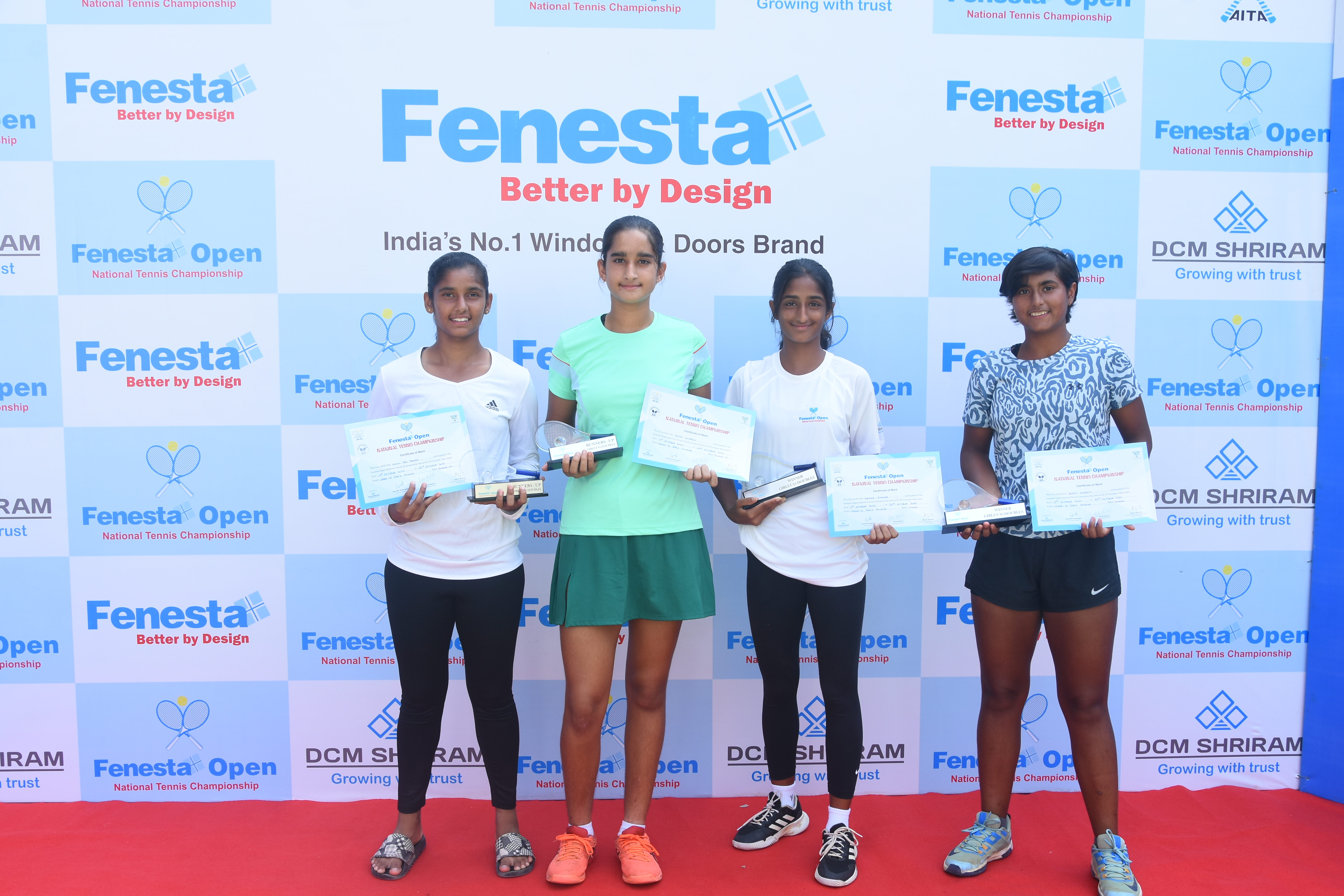 “Winners of Men’s & Women’s and Boys & Girls U18 at the Fenesta Open Tennis Championship, 2022